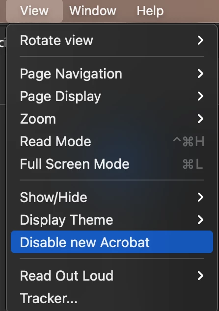 @carries40253935 I can't replicate this issue on my Mac... curious is the new Acrobat Interface on? Sometimes reverting to the classic interface resolves the issues. In Acrobat, go to the View menu and look for an option like Disable new Acrobat or Disable the new Acrobat experience. Select this option, confirm, and restart the application.