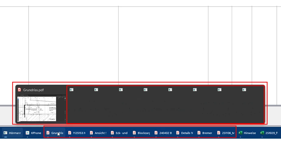 in der Vorschau bei Mouseover werden 5 Dokumente angezeigt, wie man erkennen kann teilweise doppelt: