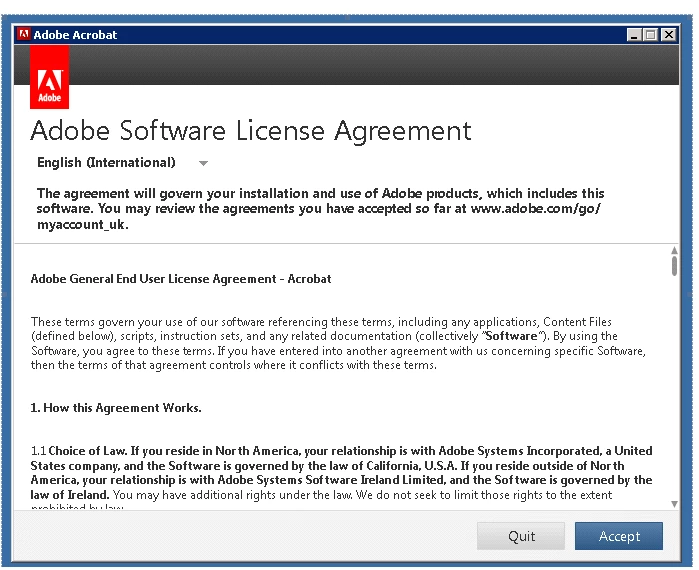 Adobe Acrobat DC I am getting the “Adobe Software License Agreement” message