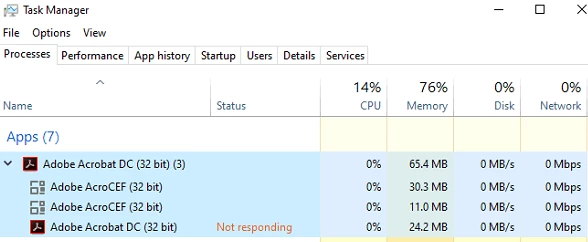 Adobe Acrobat DC not responding