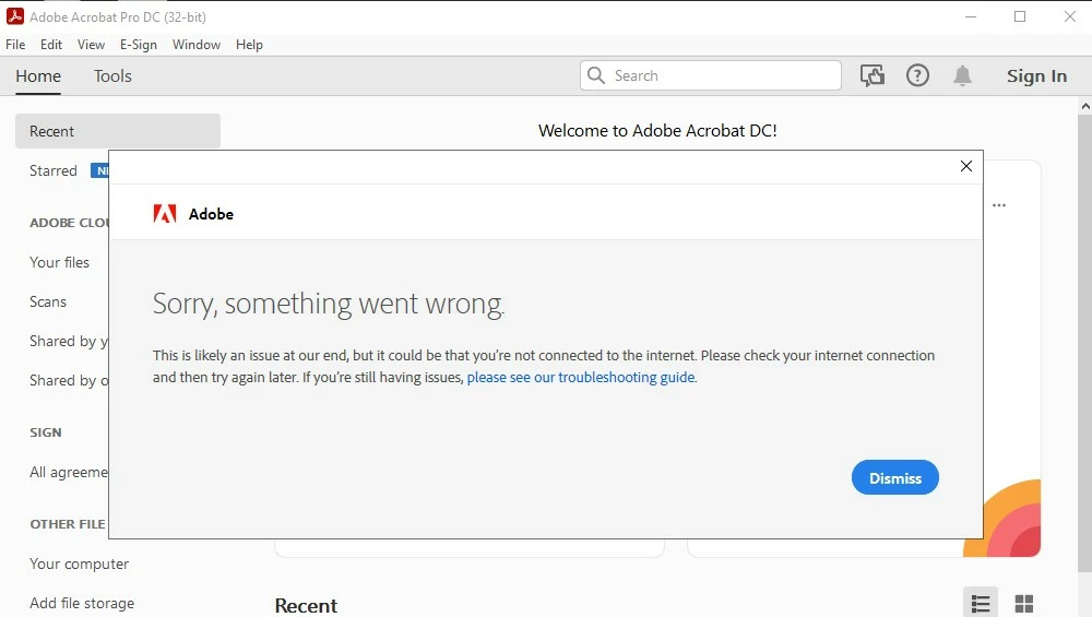 RRamiNoufalParticipantForum|Forum|3 years agoSeptember 20, 2022Questionadobe acrobat dc Pro no internet connection/ can you advise me please with this, thanks,Forum|Forum|3 years agoSeptember 20, 20221 reply447 viewsInstall update and subscribe to Acrobat