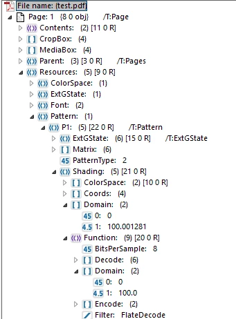 Upon closer investigation, Distiller seems to have “truncated” or rounded Function Domain float value from 100.00128 to 100.0 (`screenshot_domains_after_distill.png`). It is likely a problem in itself (as the Function Domain should be a superset of Shading Domain), but we are not sure this is exactly what causes Acrobat drawing error on the page. Some other PDF readers we tried managed to open and render this PDF.
