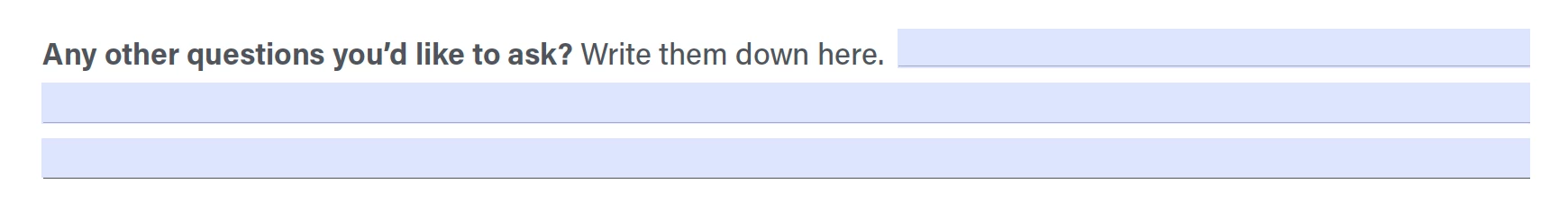 I have a few instances where our client would like the first text field to begin where the question ends which rules out using the traditional square multi line field. Instead, I need to make a few different fields and link them for continuous typing, no hitting tab to get to the next field. Pretty sure a script can handle that but the ones I found online did not work for me.