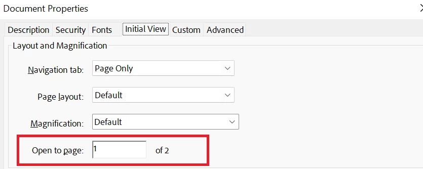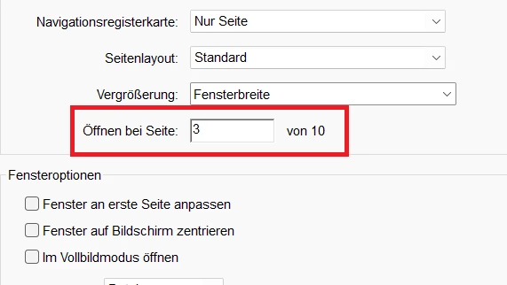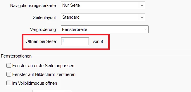 Adobe Acrobat (neueste Version): "Seite beim Öffnen" wird in den Dokumenteigenschaften verändert