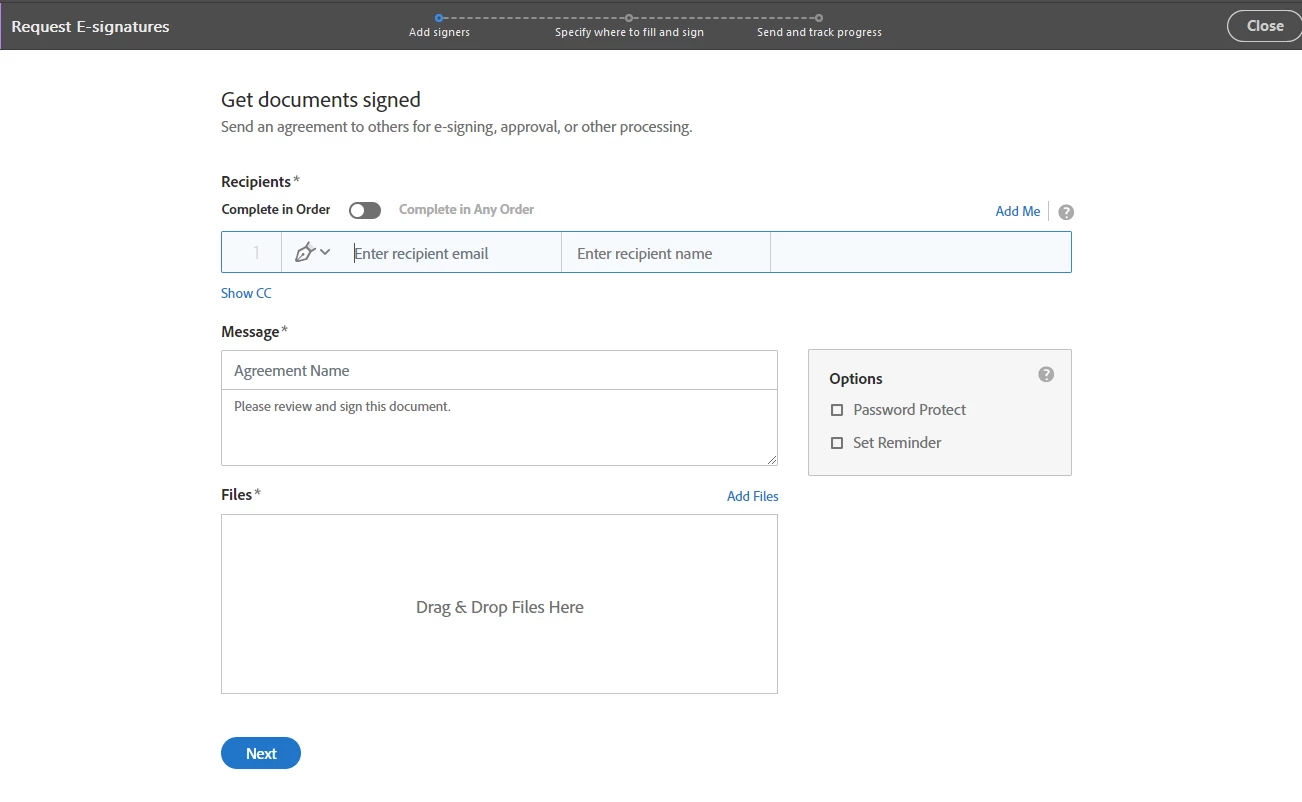 Adobe Acrobat No Longer Allows Drag & Drop Files in the Request E-Signatures Feature.