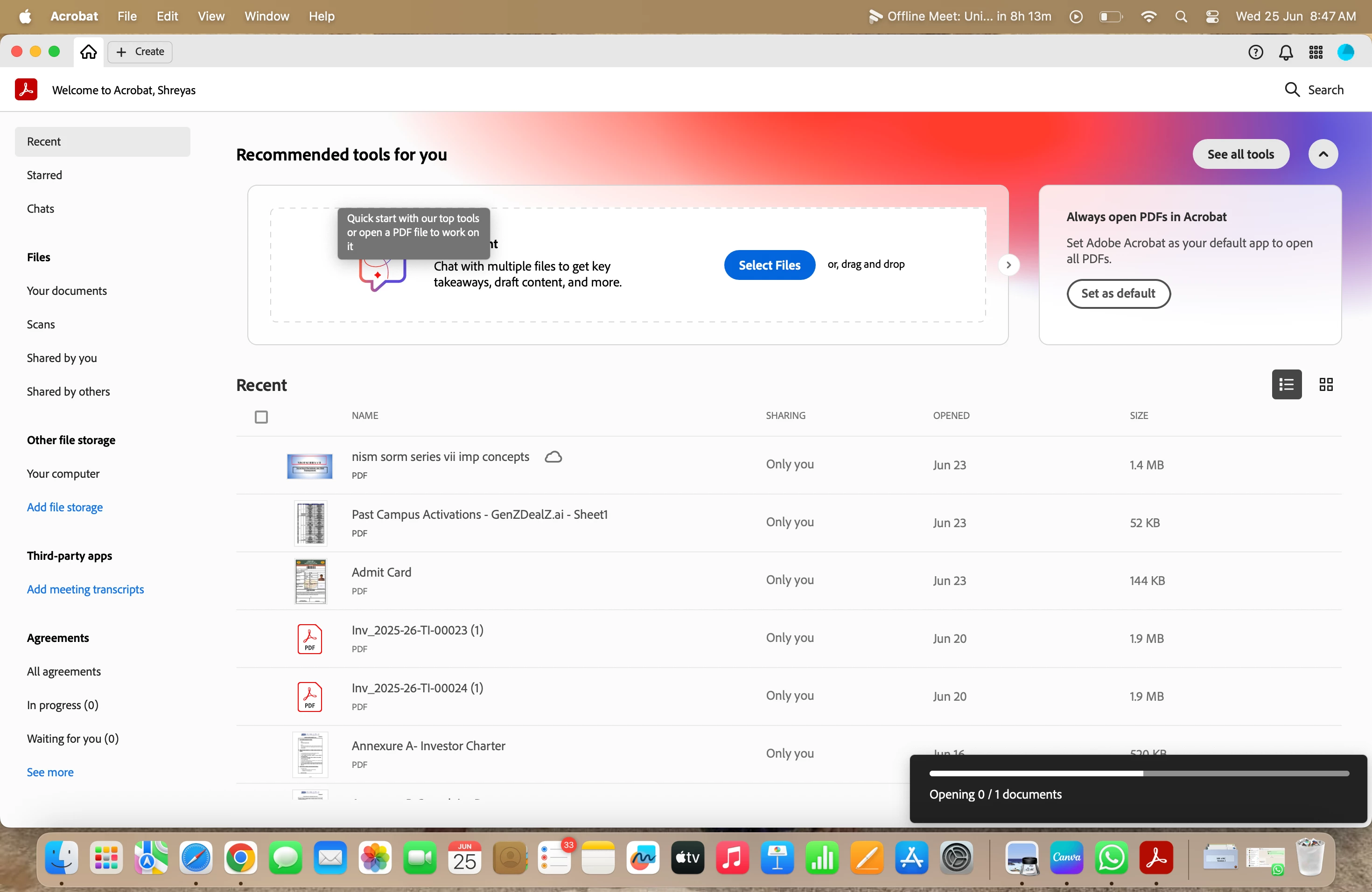 Would you mind sharing the version of the Acrobat Application you are using? To check the version go to Help > About Acrobat and make sure its updated to the latest version 25.01.205XX. Go to Help > Check for updates and reboot the device once and see if that works.