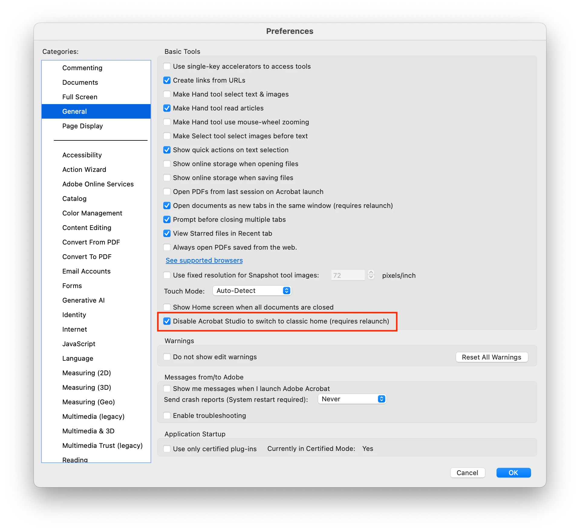 Adobe Acrobat - Permanently Disable Home Screen Feature