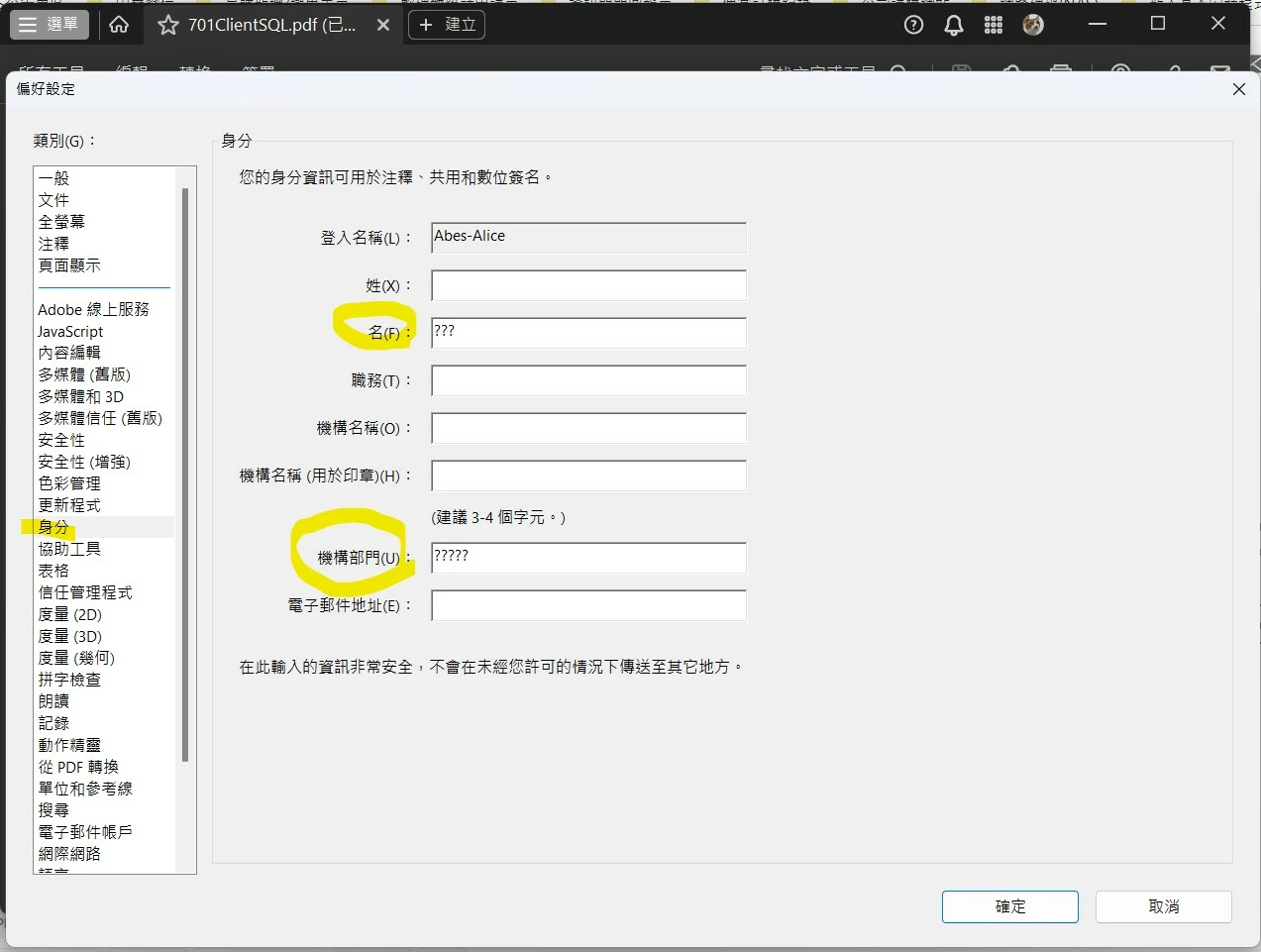 重新設定名(F)和機構部門(U),可以暫時解決問題