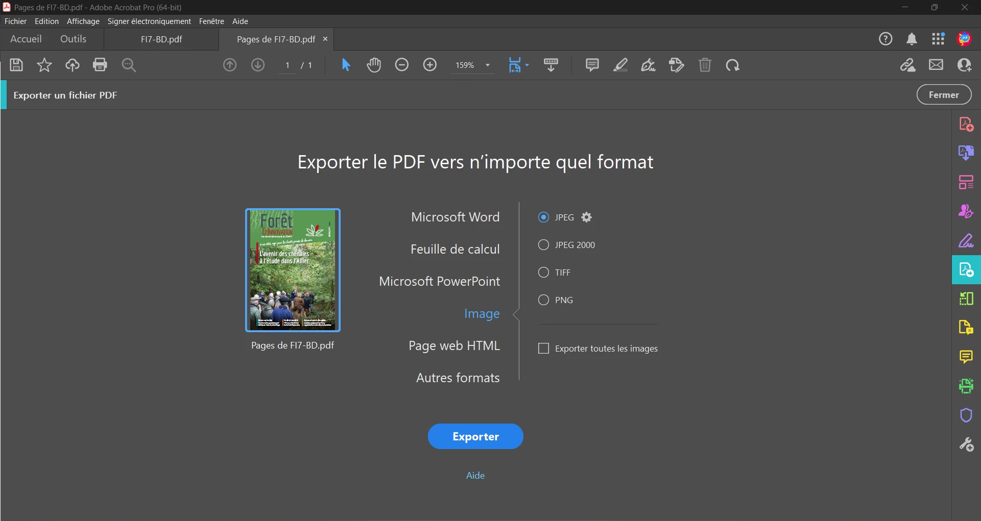 Adobe Acrobat Pro : Exportation en JPEG