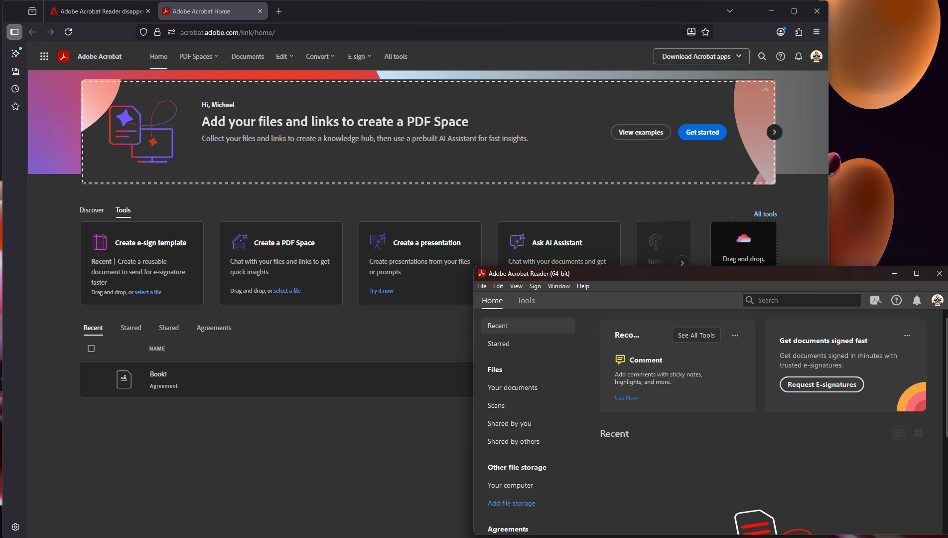 I have tried several times now to install Adobe Acrobat Reader in order to sign an electronic document.