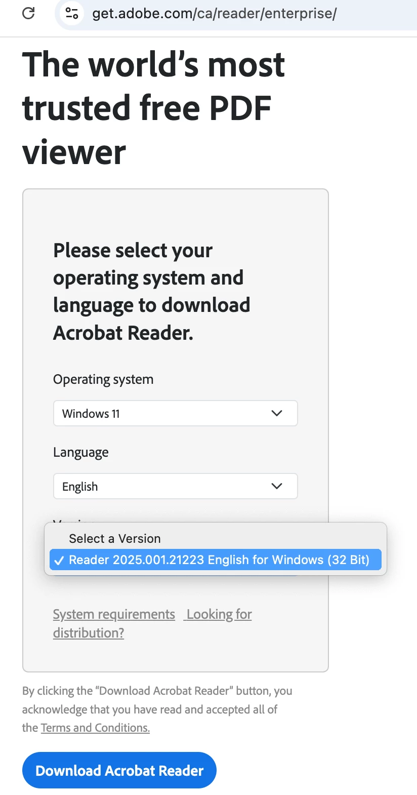 Adobe Acrobat Reader specs: