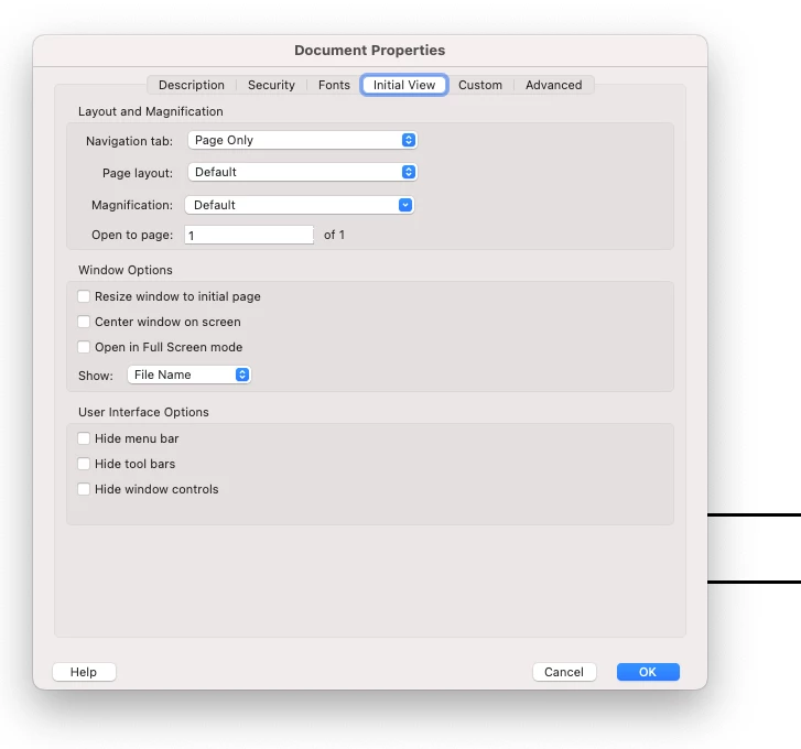 Hi, I have one .pdf that opens way larger than the window for some reason. If I go into "view" and click on "fit width" it looks fine, but after saving it like that, it reopens too large again when I reopen it. It's only this one .pdf and I'm wondering how I can get it to open window-sized permanently. Any help is greatly appreciated.