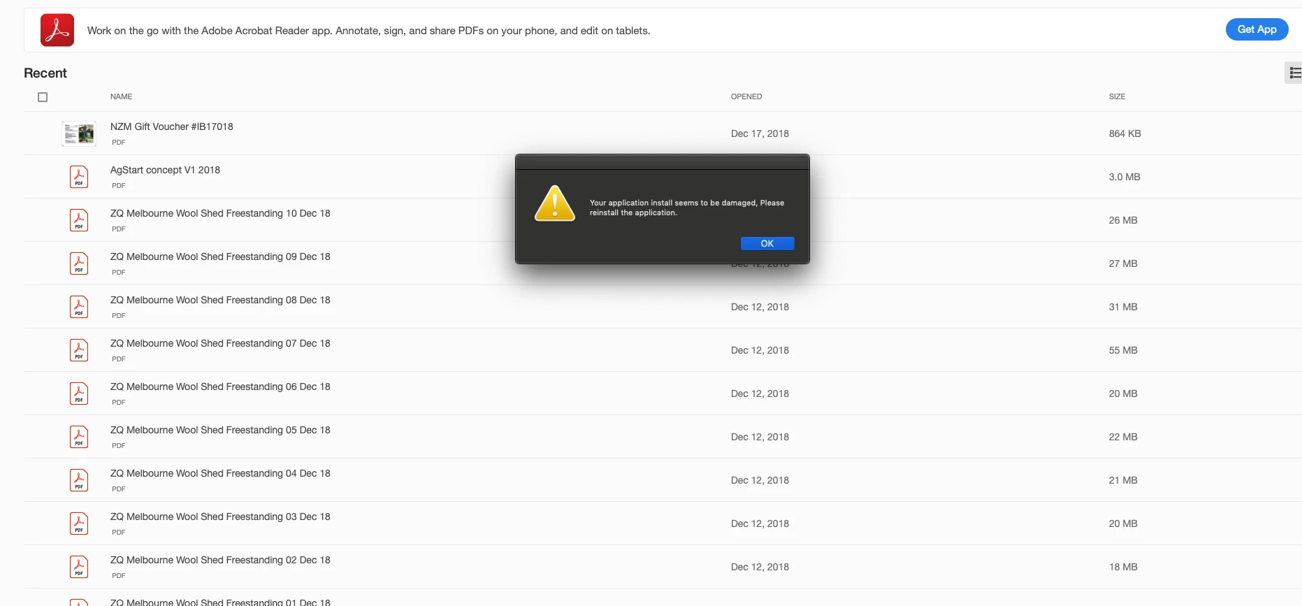 "your application install seems to be damaged, please reinstall the application".
