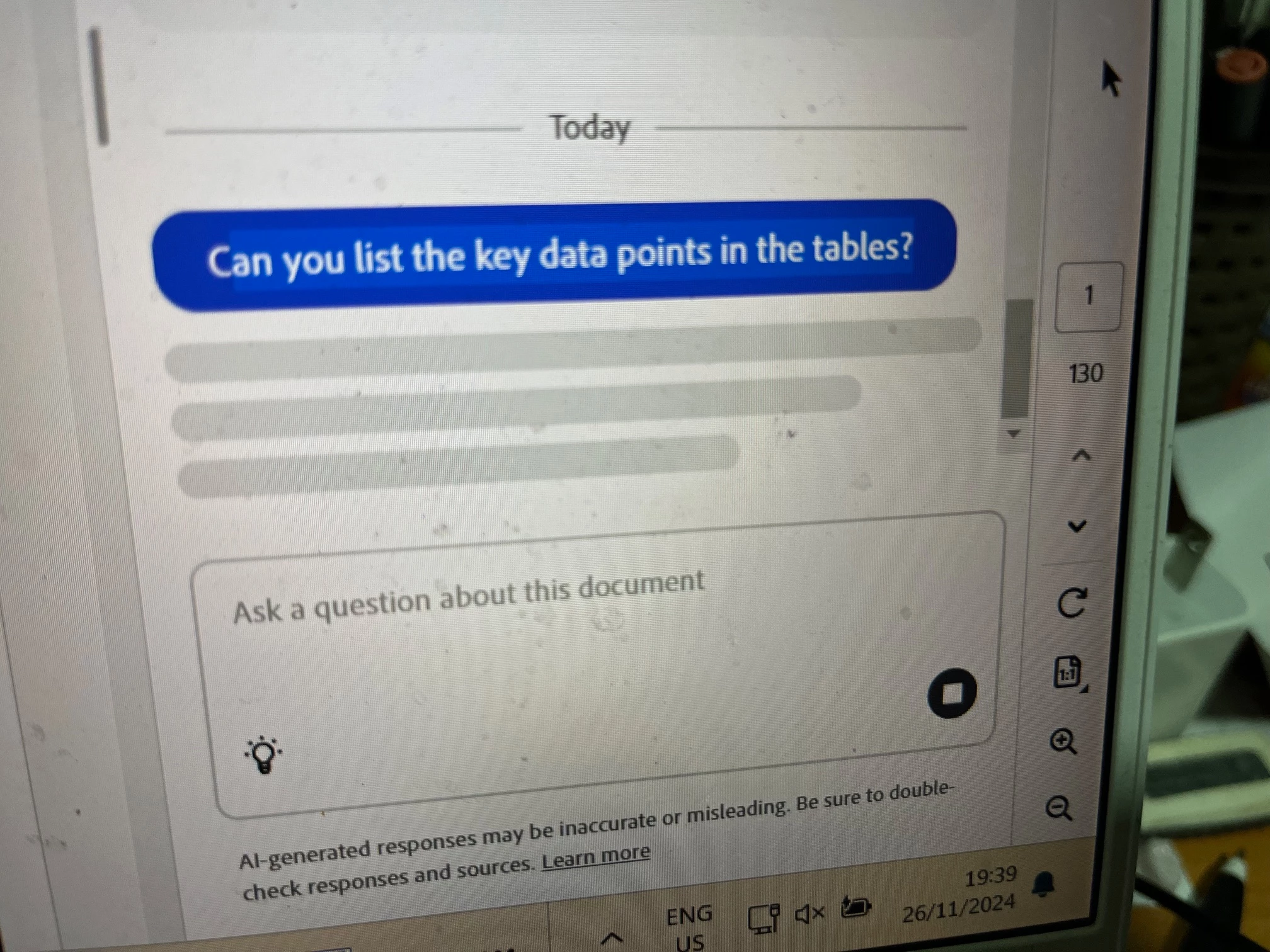 Adobe AI Assistant stuck - unable to extract information from PDF files