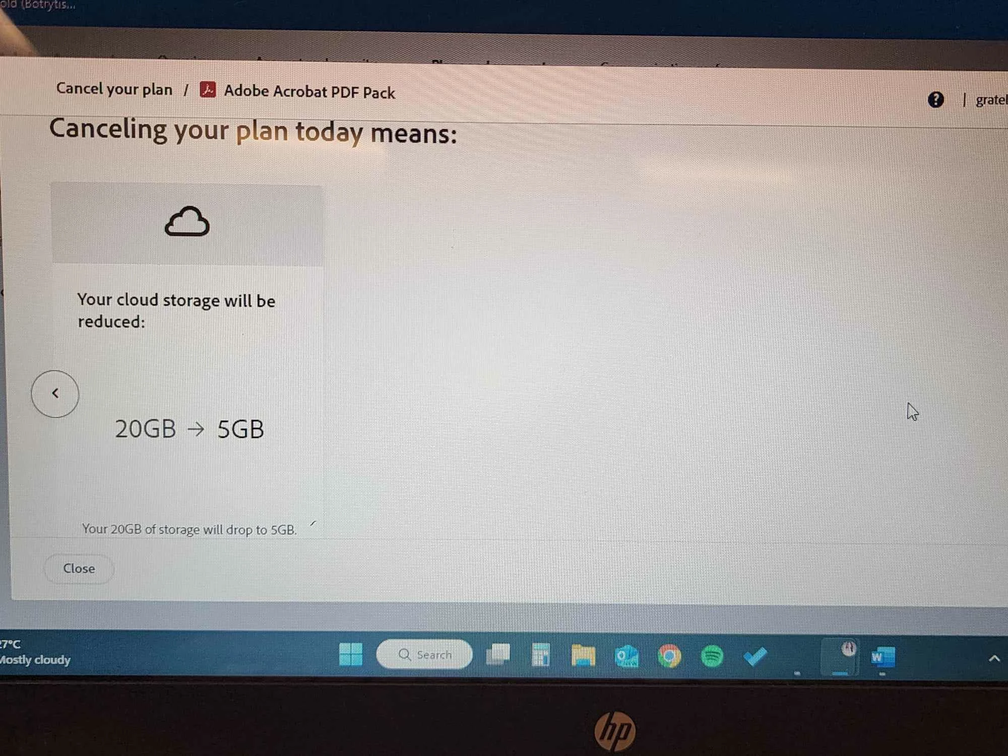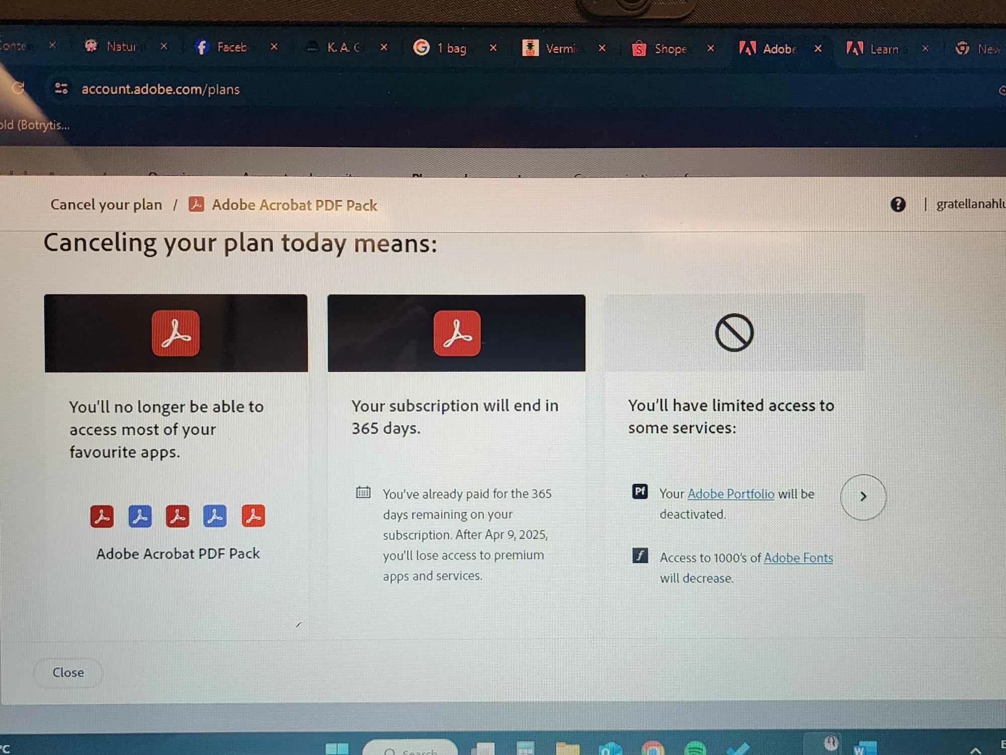 I need help. I changed my plan to Adobe Acrobat PDF Pack recently because I didn't need the other apps honestly from the last plan that cost me around $26/month. Now, before I agreed with the terms, they indicated that I can get a full refund of what I have just paid for this new plan which is $160/year if I cancel before April 26, 2024. Today I tried to cancel, but the prompt on the website did not say something about getting a full refund if I cancel today, but they were quick to point out that they will charge me for an exit fee (which is ~$147 by the way!) last time I subscribed to a different plan. See pictures for prompts!