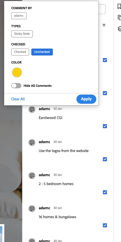Adobe Comments Checked / Unchecked filters don't work