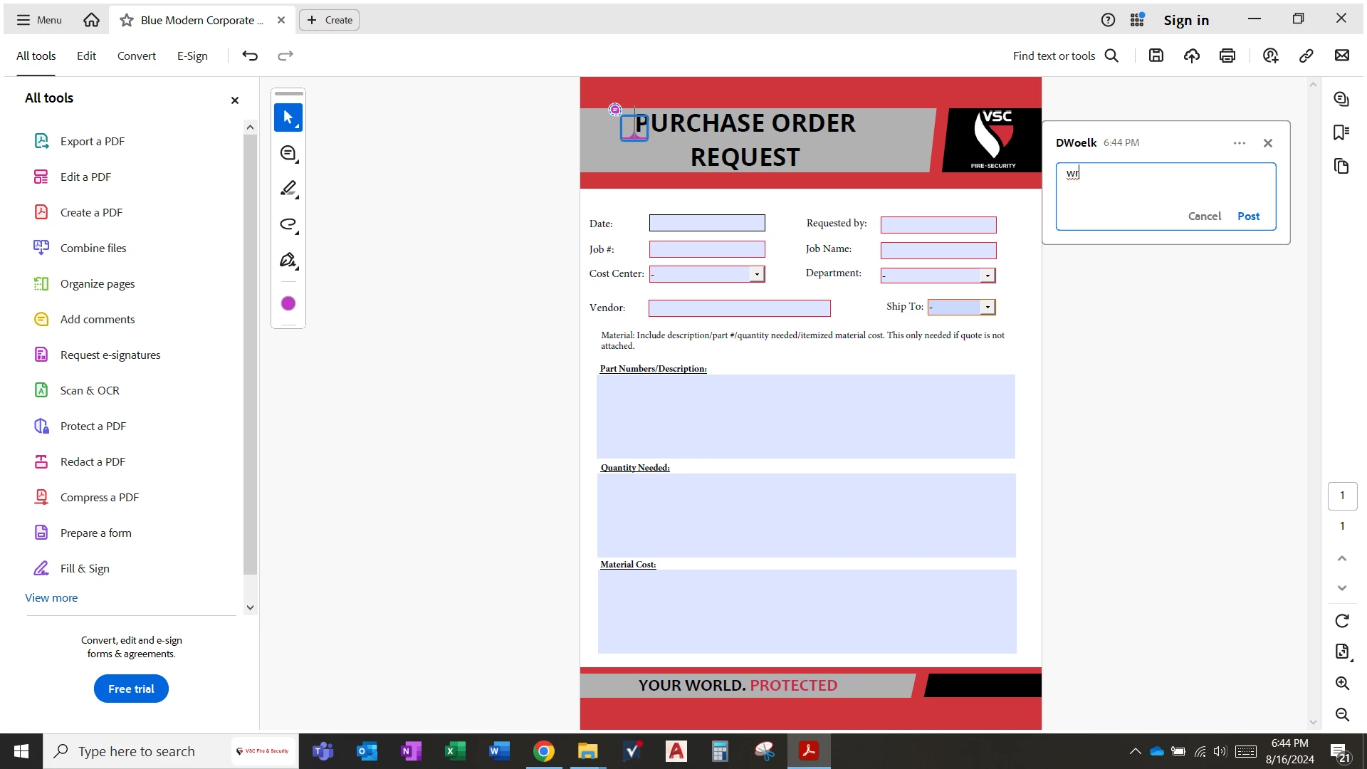 ther is also a pdf order form i have to use to pull POs on a daily bases that will radomly switch from me typing in a box to typing a memo at the top of the page. how does that work. SMH