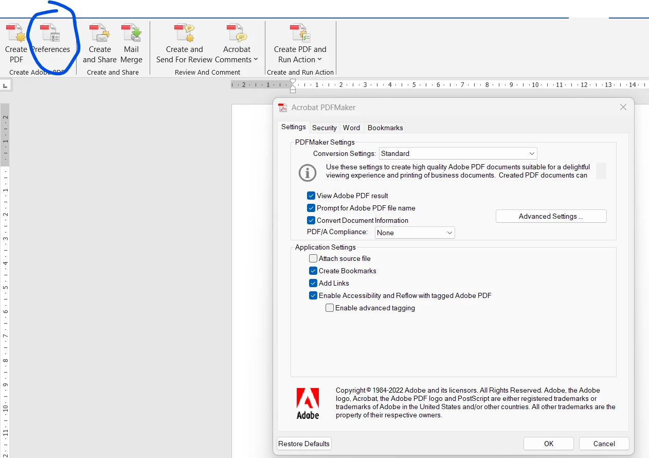Adobe MS Word PDFMaker Office COM add-in output customization