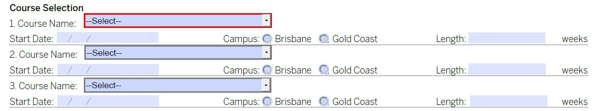 In one section, we have Course Selection with the following fields: