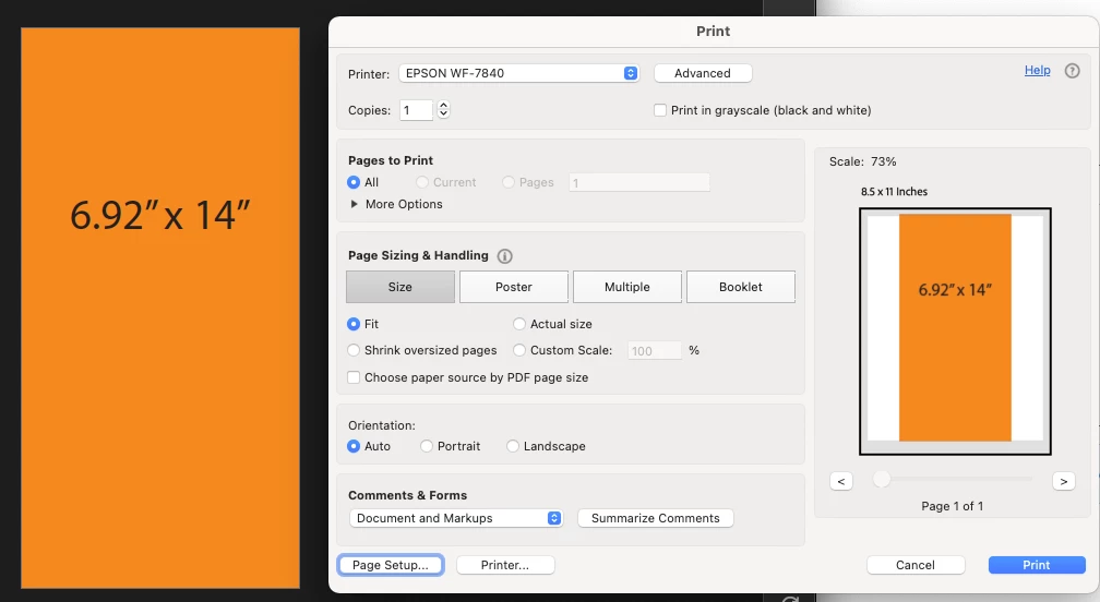 The issue is: Certain PDF documents download with a page layout of 6.92 x 14 in (for example, credit card statements). My current printer does not accommodate this size paper. I want to be able to print statements on 8.5 x 11 in paper and I DON'T CARE IF PART OF THE DOCUMENT CUTS OFF AT THE BOTTOM.