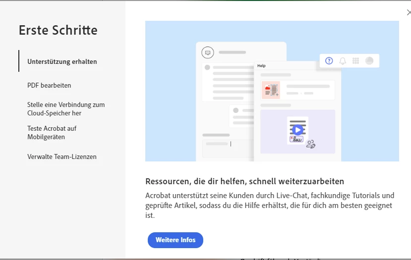 immer wenn ich den Adobe Reader bzw. eine PDF öffne kommt die Anzeige "Erste Schritte". Ich habe das Programm bereits neu installiert, aber die Meldung erscheint immer wieder. Habt ihr da eine Idee, wie ich das ausblenden kann?