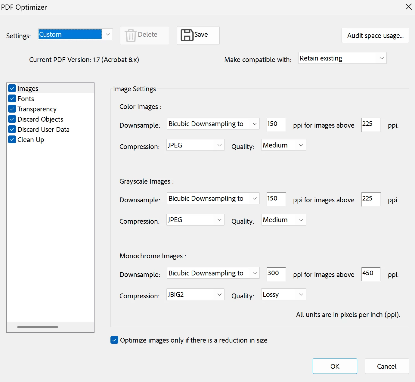 The past couple weeks I have noticed that after compressing the files, something changes though. Letters in words are removed and replaced with apostrophes or periods. I have only noticed the changes being made to text fields, but all my forms have been affected. I tried adjusting the settings in the advanced optimization dialog box, but nothing seems to be helping.