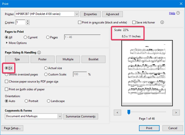 Then, I know I can easily use acrobat to take a little bit off the top and bottom to get the page size to the 8.5 by 11 aspect ratio. But, is there an easy way to then reduce the size of the entire PDF down to 8.5 by 11 or 11 by 17?