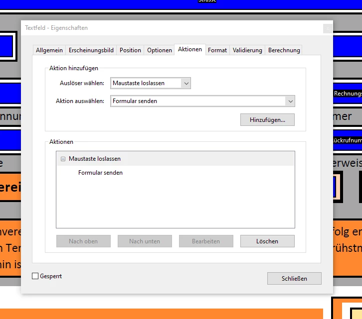 ich habe ein ausfüllbares Formular erstellt, welches einen Knopf zum versenden des Formulares beinhaltet. Dort ist eine eMail Adresse hinterlegt und funktioniert auch wunderbar. Allerdings hätte ich jetzt noch zwei Funktionen: