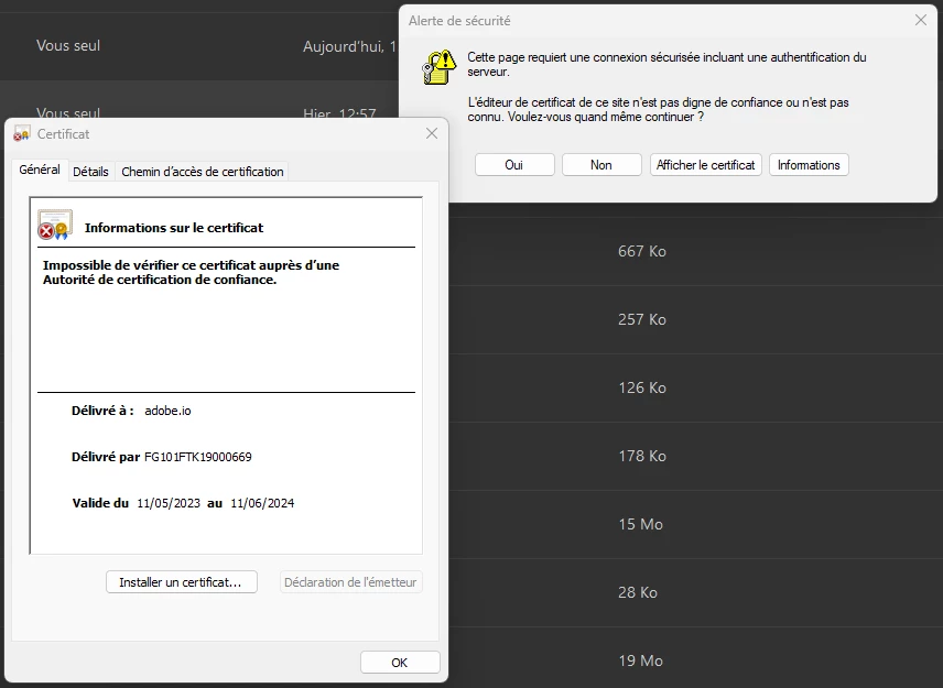 Alerte certificat non digne de confiance