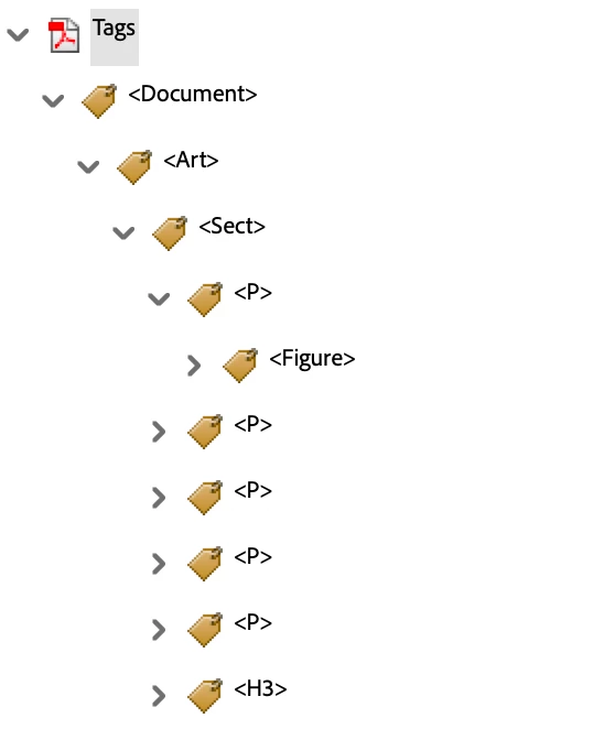 The screenshot of the tags panel shows the <Figure> tag contained within a <P> tag. My understanding is this is due to the figure having been inserted into the text thread within indesign. Once the <Figure> is placed outside the <P> it works fine in Acrobat, but as I said, this was never an issue. I have 100s of archived PDFs which worked fine previously so would like to find a solution which didn’t require this additional step for every figure.