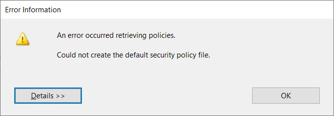 An error occurred retrieving policies
