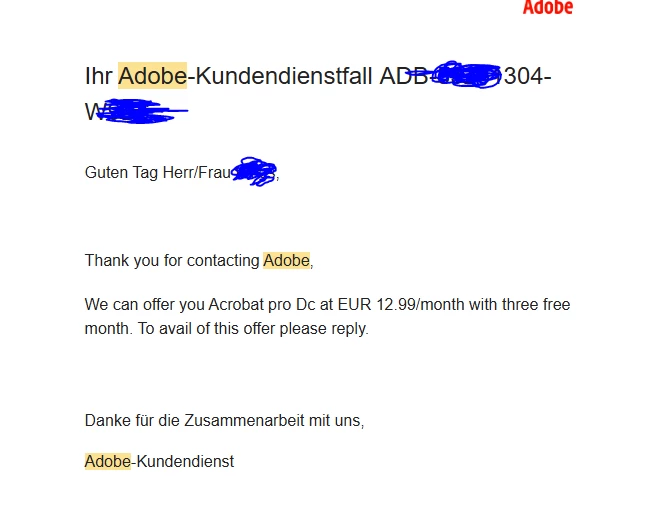 Its funny how Adobe immediatly send out an E-Mail to offer me there subscription crap...