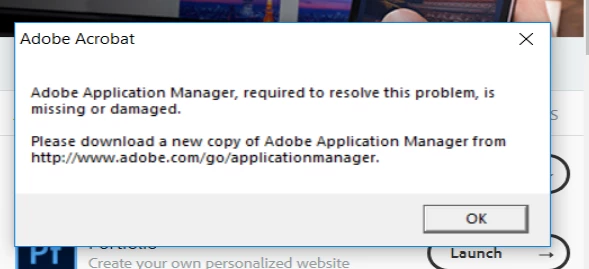 Application Manager Missing or Damaged when installing Acrobat DC