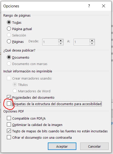 However, I think that I have found one solution (furthermore yours), that consist of deselect this part in the "Options" window when you are saving as PDF one Word file. I mean: