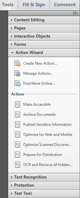 - Launch Acrobat and Go to Tools> Action Wizard> Create New Action
