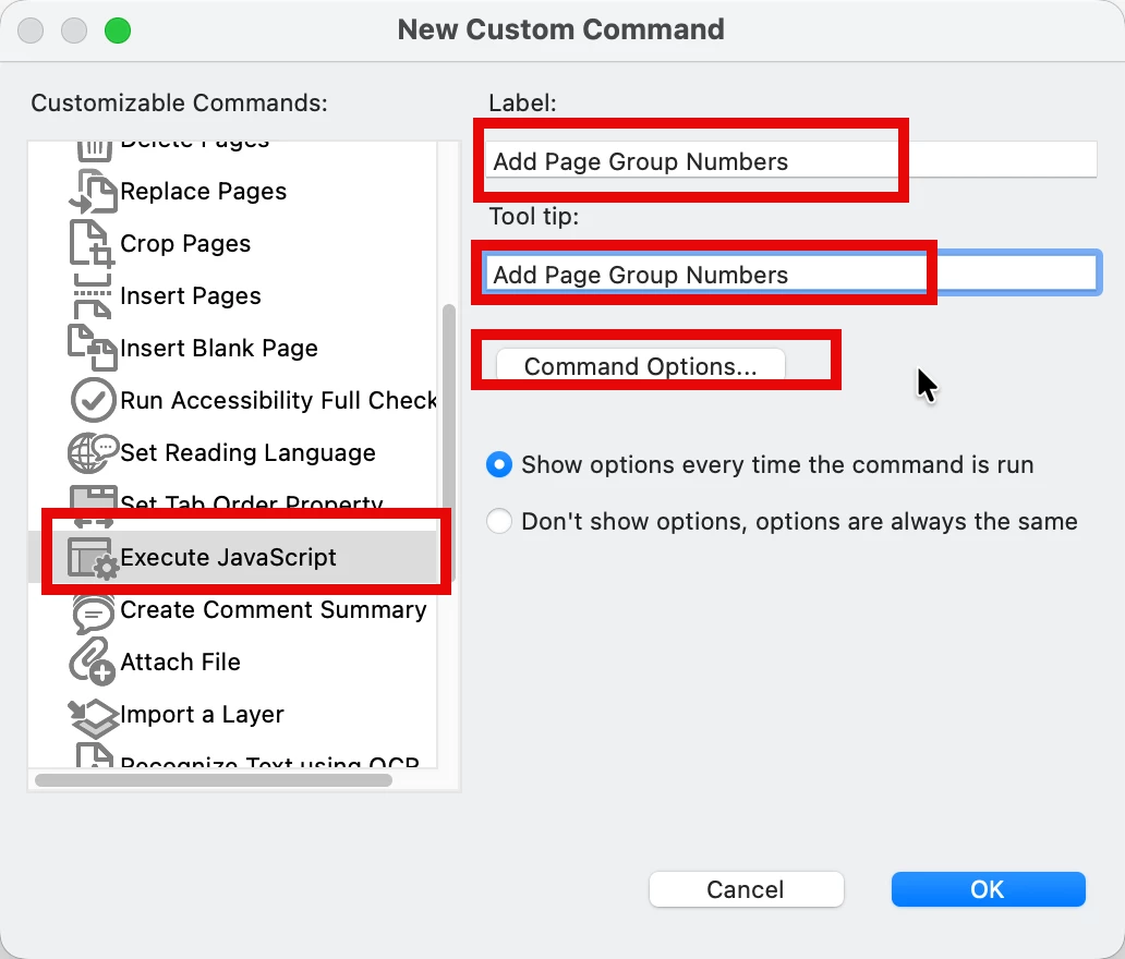 (2) Create two separate files for the pre-survey and post-survey, using organize pages to duplicate each page 500 times, then bates numbering every page. The thought was that I could then use combine files.