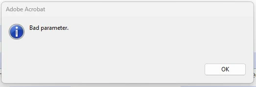 I have a drop down field that will spawn page templates based on the drop down selection. If the user changes their selection, the previsouly-spawned template pp. will be deleted and new template pp. will spawn. This works well, but sometimes a "Bad parameter" message will pop-up when a new selection is made. The function still works (the proper pages will still spawn/delete), but the message pops up. I don't have any JavaScript errors and cannot find a consistant reason why this message will pop up (I can go through several choices/changes without any bad parameter messages and then the message will pop up--but still delete/spawn correctly-- and then it won't pop up on the next selection or maybe will pop up on several selections in a row). Does anyone know what could be causing this message to pop up and/or how to stop it? Any input would be greatly appreciated.