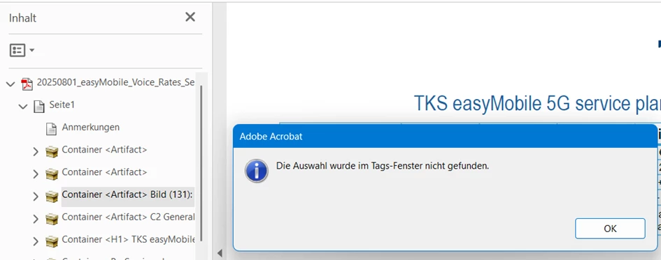 Hallo, kann mir jemand helfen. In Adobe Acrobat Pro - Barrierefreiheit-Tags fehlt mir seit einigen Tagen das Tag Artifact.