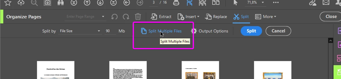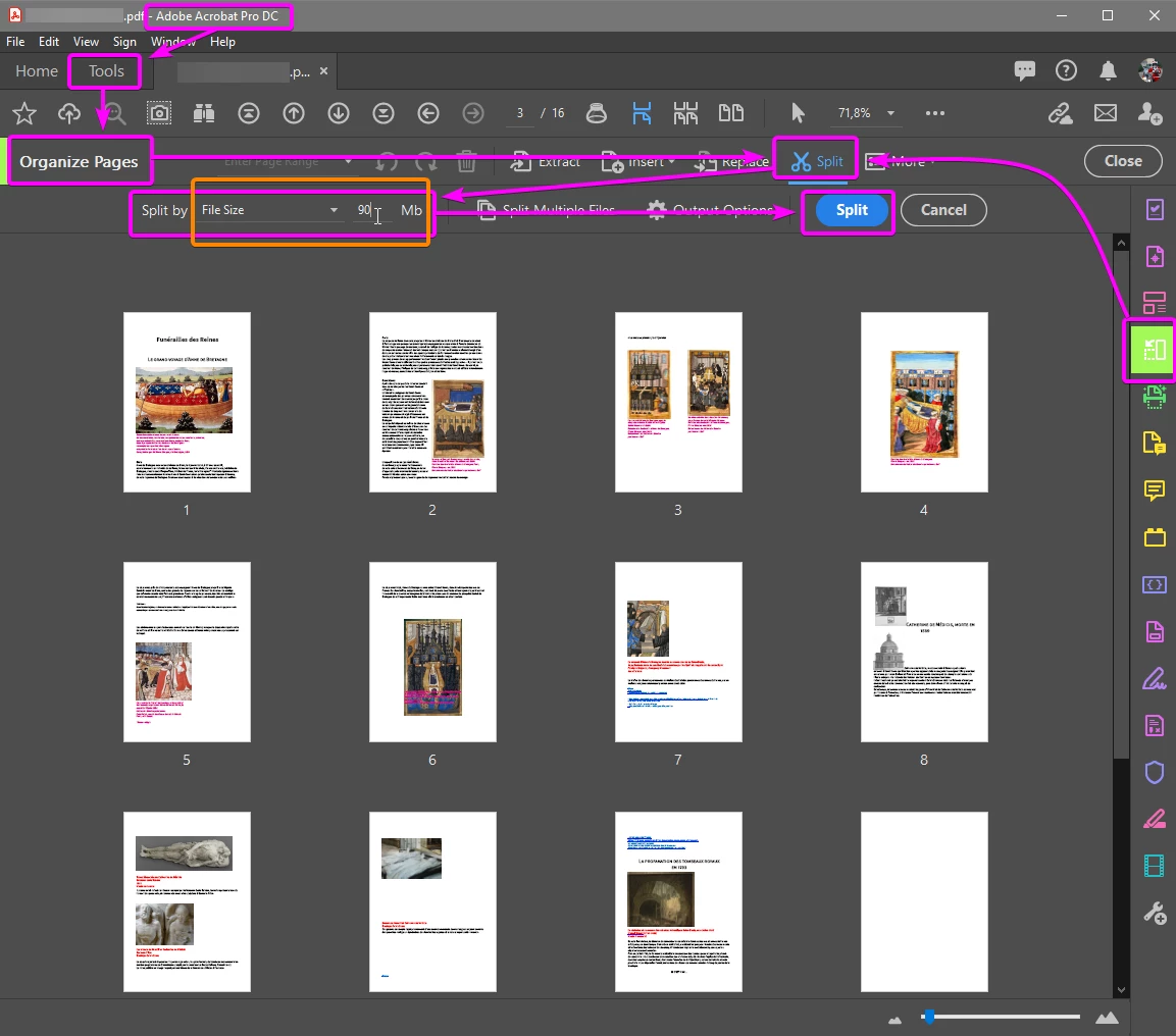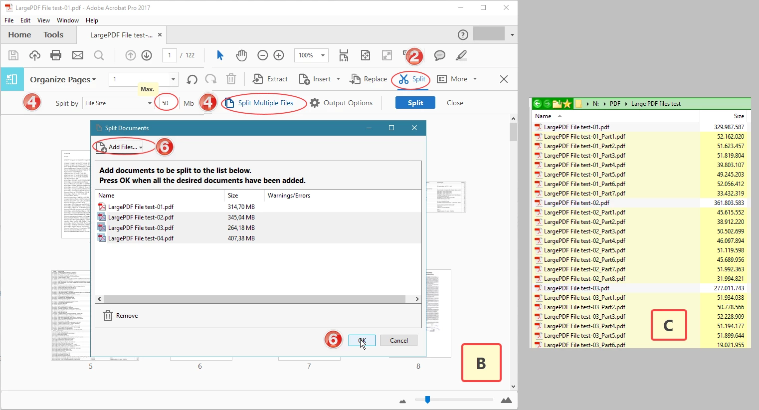 I need to split (a lot of) big PDFs into smaller pieces of max 80-90MB each.