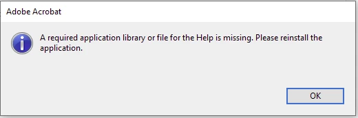 Whan I click Acrobat Reader Help from the Help tab, I receive this message: