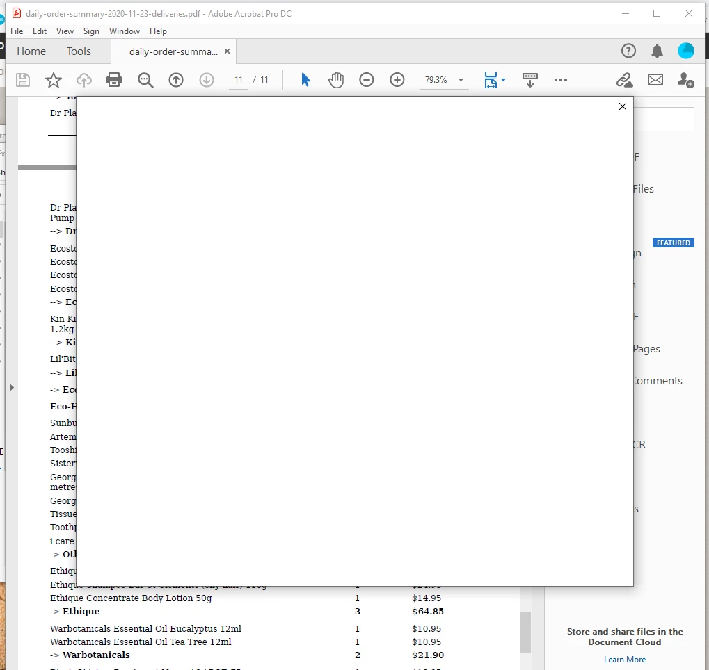 Blank white square pops-up on Acrobat - freezes commands andcloses down program when I click on "x"