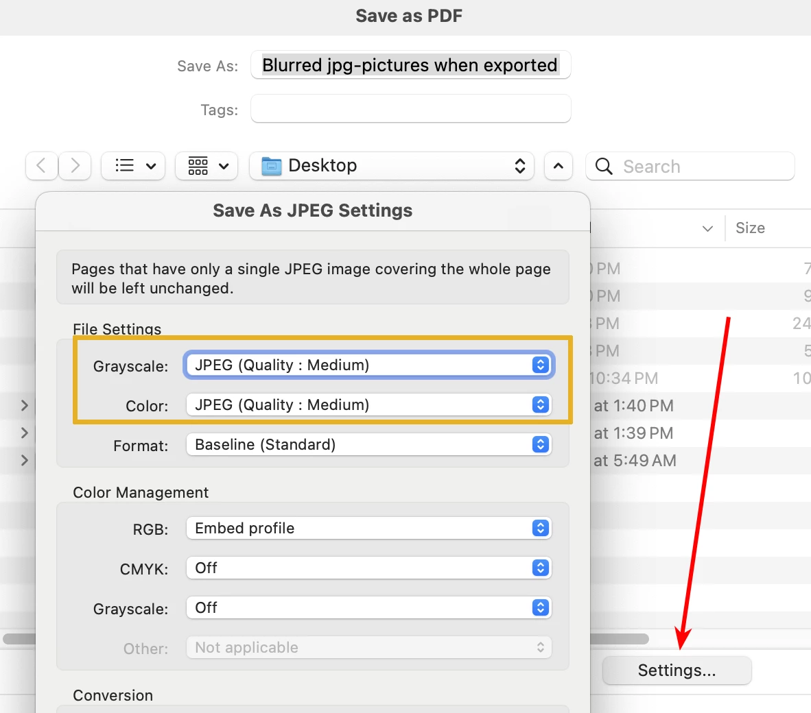 Now, Close that window and run the save as JPG. You should be good to go (you'll be better if you have your text saved as grayscale, not a two-bit image