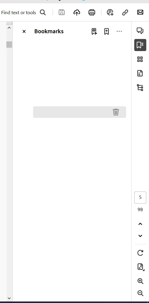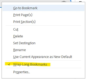 I have a PDF with bookmarks. When I look at the bookmark tab, I can see that the bookmarks are there and I can click on them and they work. However, the text for the bookmark titles is not showing up. If I double click to rename I can see what each bookmark is called, but even if I type the name out again and save, it is not showing up.