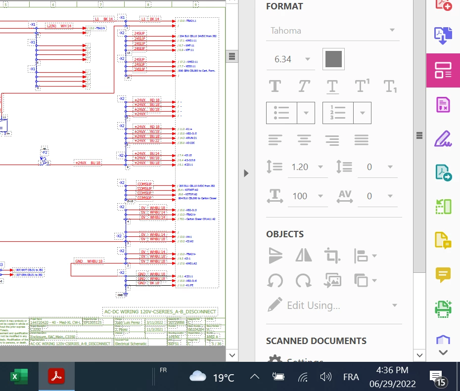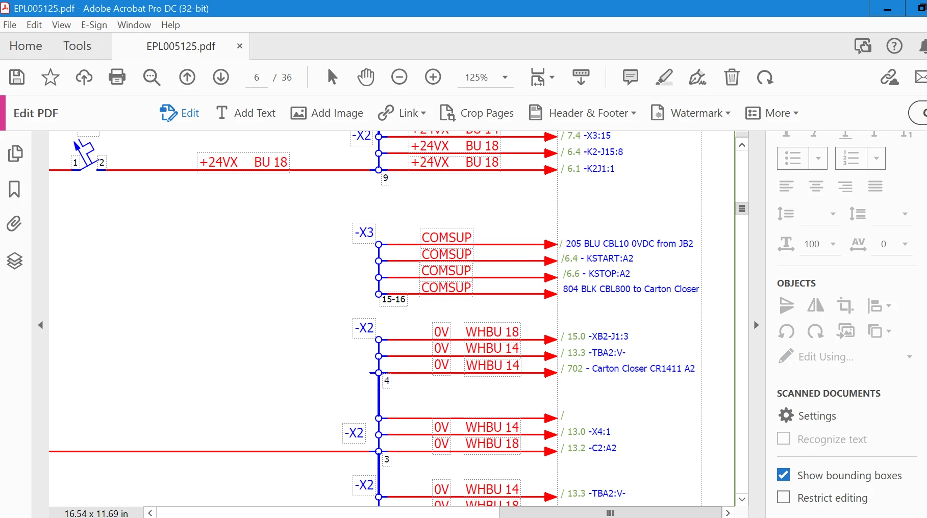 My supplier sends me the electrical schematic of my new equipment in PDF format.  I usually edit them using Acrobat Pro DC to add a few wires to connect my existing equipments.