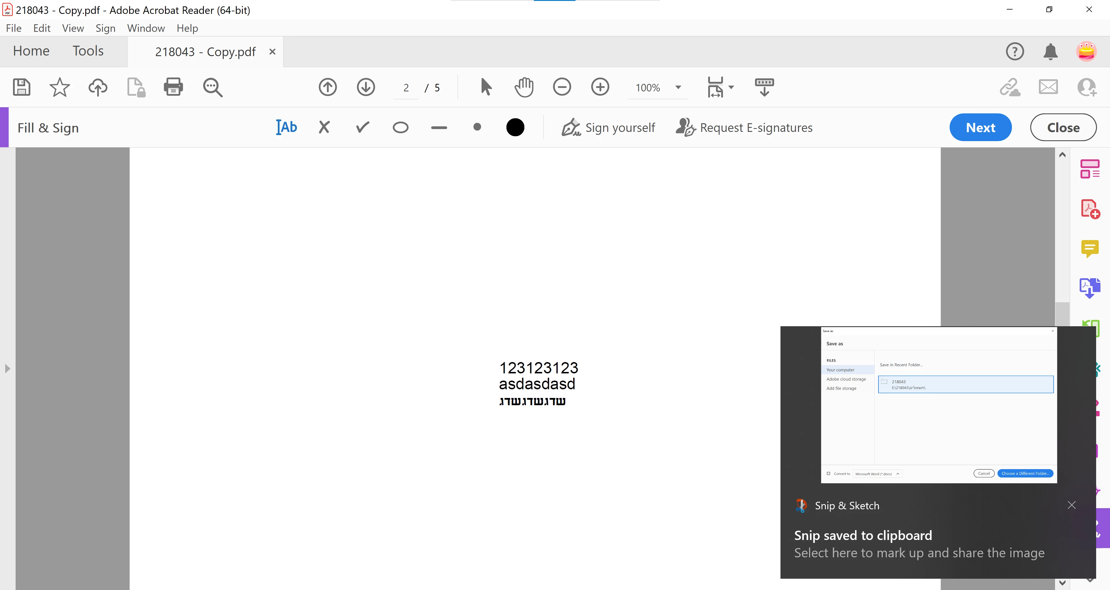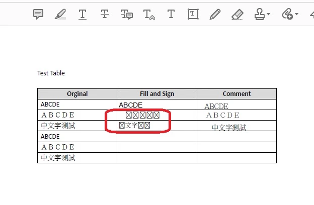 Broken data over saved PDF form.