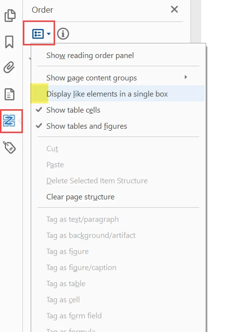 I'm using Reading Order to structurally mark up a PDF for accessibility.