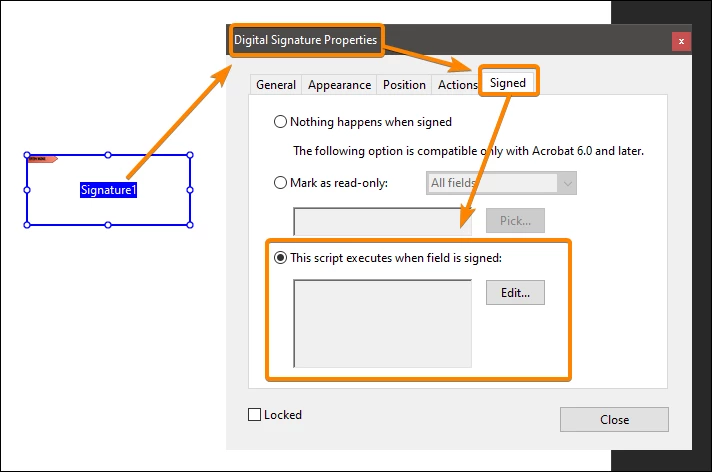 I'm trying to figure out how to have a button run a JavaScript to check that a signature block is signed before allowing any other data to be input into the fillable form. Basically I am wanting to have some one Sign on the top of the form that will allow for data entry throughout the rest of the form.
