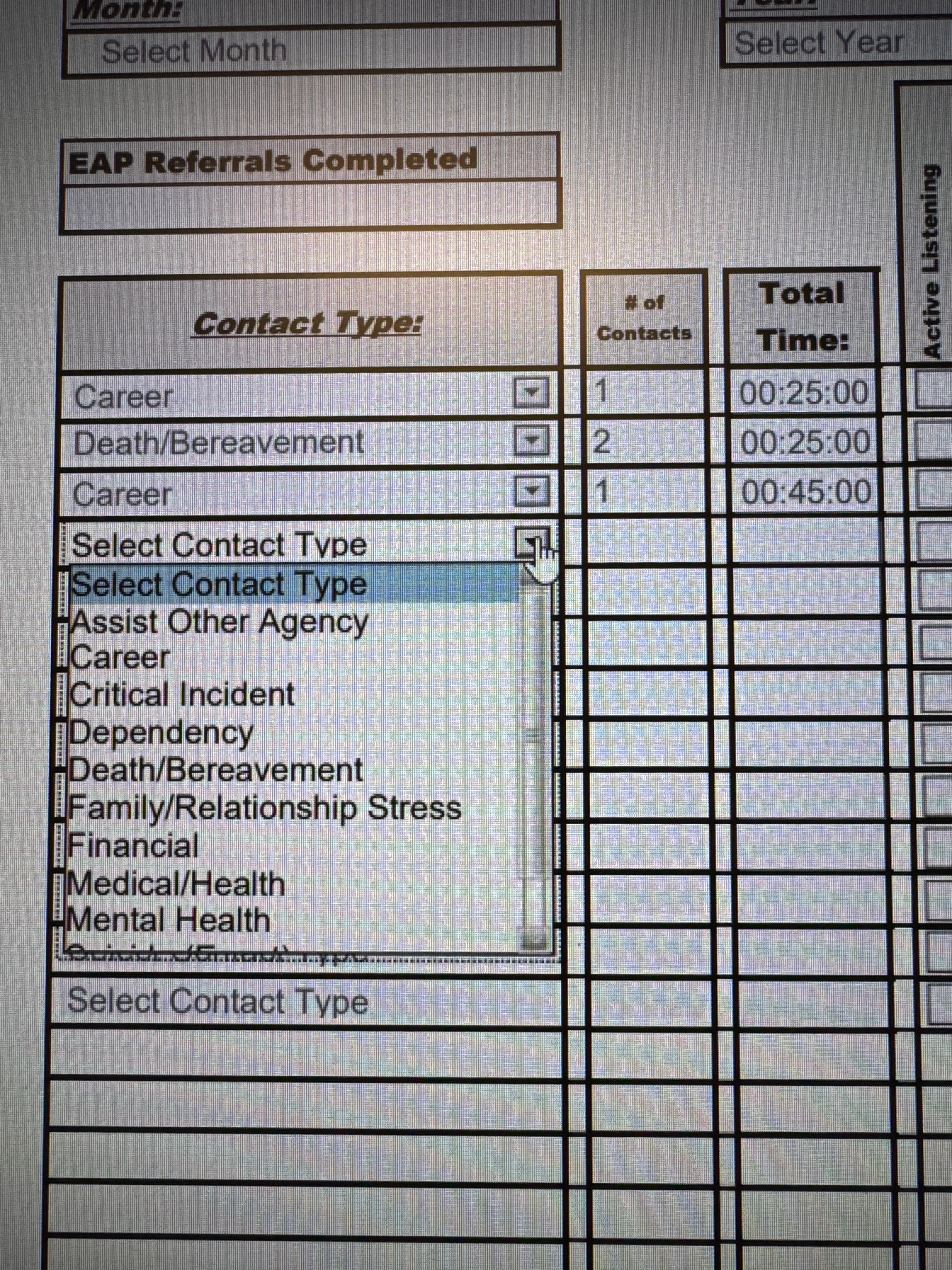 I am trying to find sum of # of contact and time drop down field selected from first picture. There can be multiple selection of same field. And the sum should be added to the second picture.