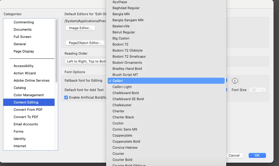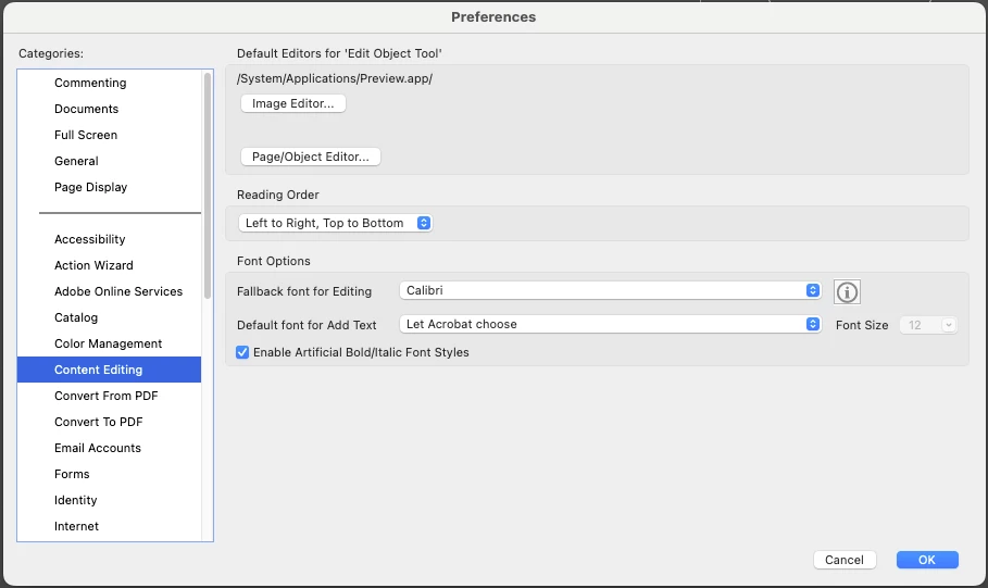 I am trying to edit a PDF document using Acrobat DC (mac OS).