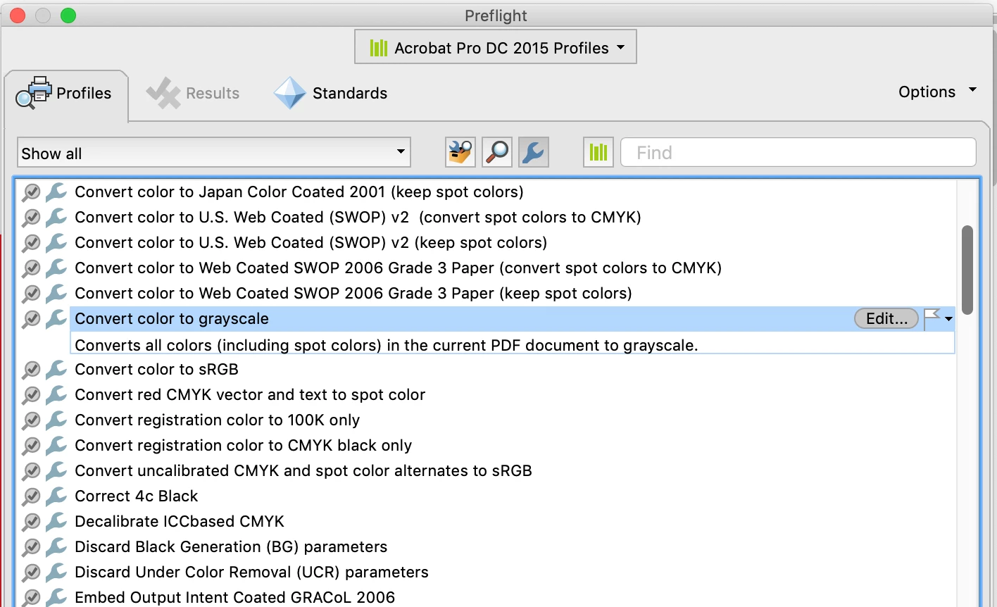I think the Acrobat Convert Color settings I used were US Coated (SWOP) v2, color type Grayscale, checked Preserve Black and Promote Gray to CMYK Black. To me, that last one suggests that the grays will turn black yet they did not (unless I somehow messed up and did not click it last time. My previous proofs came out black). Is there a setting that turns the grays to black?